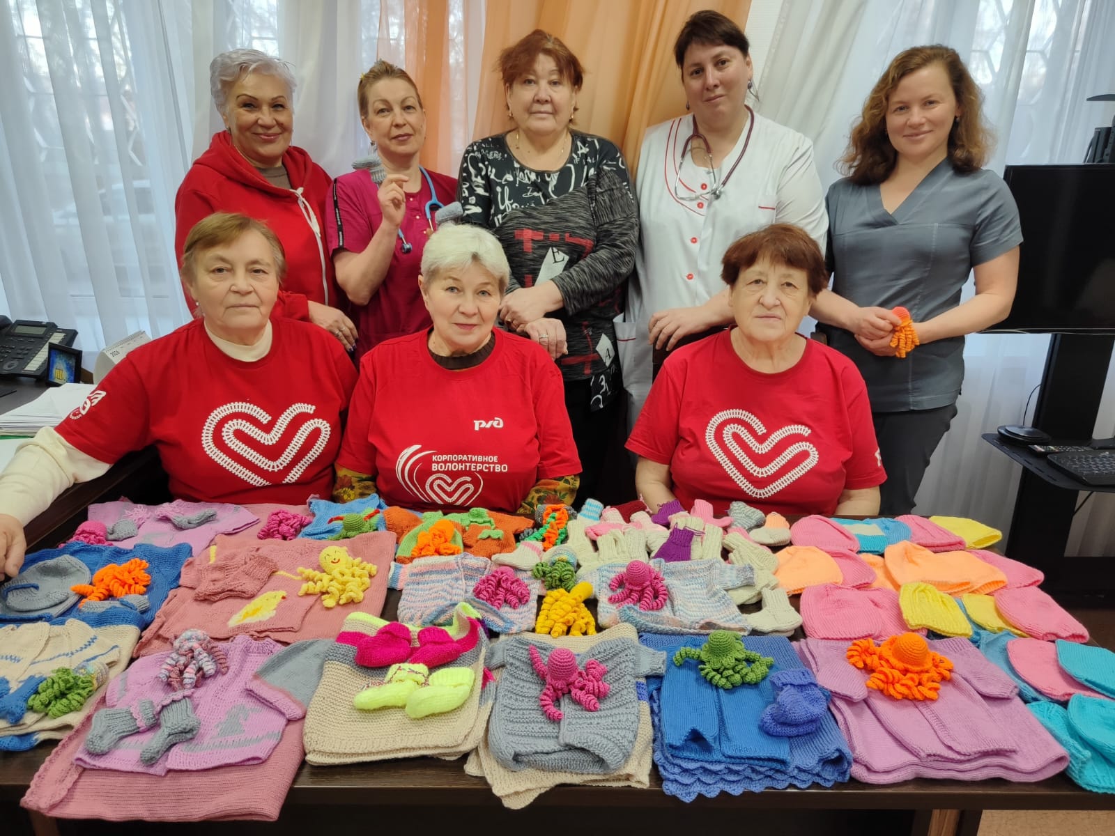 Волонтеры подарили акушерскому стационару ЦОМиД вязаные вещи для недоношенных малышей