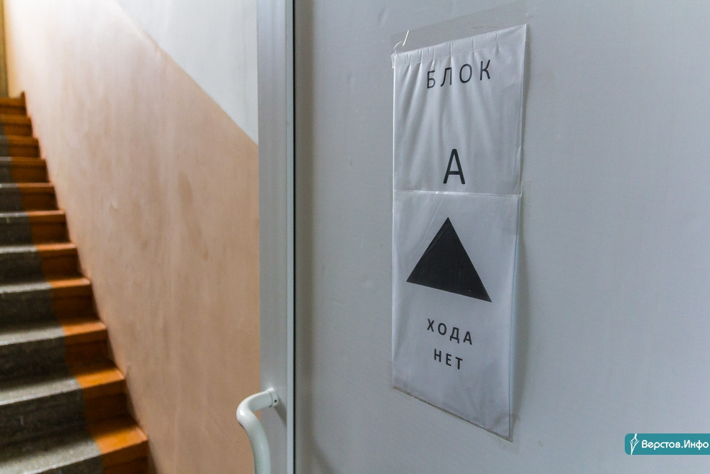 Корреспонденту «Верстов.Инфо» удалось договориться, поэтому и охрану удалось миновать. У главного входа в этот утренний час санитарка в защитном костюме и очках обрабатывала дверные ручки антисептическим раствором. В коридоре госпиталя никого, на дверях таблички: «Блок такой-то. Хода нет».