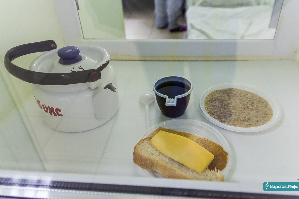 Блок А. Время завтракать. Больные ковидом средней тяжести лежат в палатах. Завтрак на каталке развозит санитарка, одетая в противочумной костюм. К пациентам она не заходит, пищу подает у двери. Еда нехитрая: каша, бутерброд с сыром и чай.